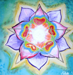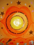 20102010 We staan allen met elkaar in verbinding. In dit schilderij met de vijf-pintige ster in een vijf-bloemige mandala.