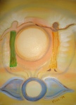 20102010 Bewustzijn en ons allen één voelen. We zijn hoe dan ook met elkaar verbonden. Sommigen mogen we tegen komen op ons pad om van te leren of om juist een les te geven. Dat wordt bedoeld met dit schilderij.